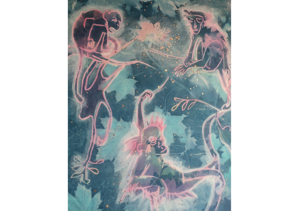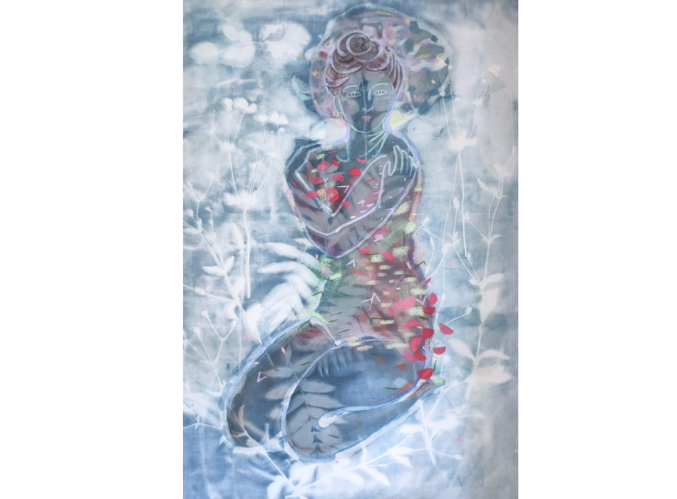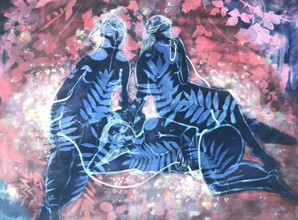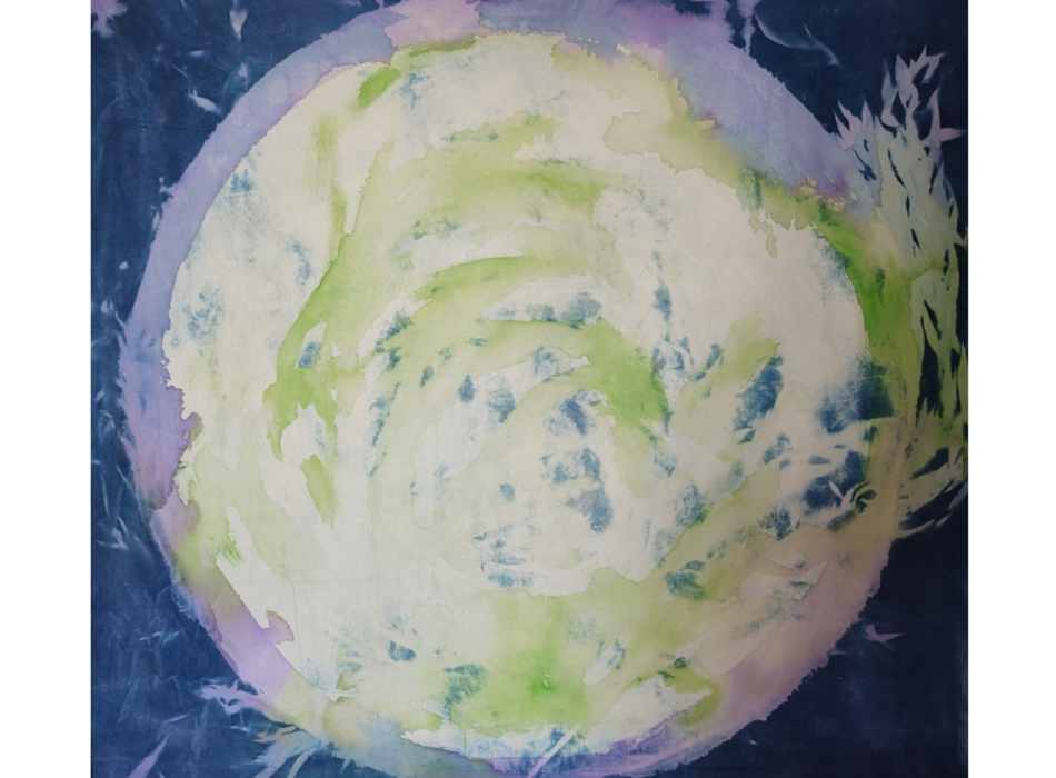 Bei der Cyanotypie, auch als Blaudruck bekannt, wird mit einer chemischen Eisenlösung garbeitet, welche unter UV-Licht blaue Kristalle bildet.