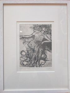 Technik: Reservage (Aquatinta Aussprengtechnik) 2011, im Jahr 2026 mit Chine-Collé
