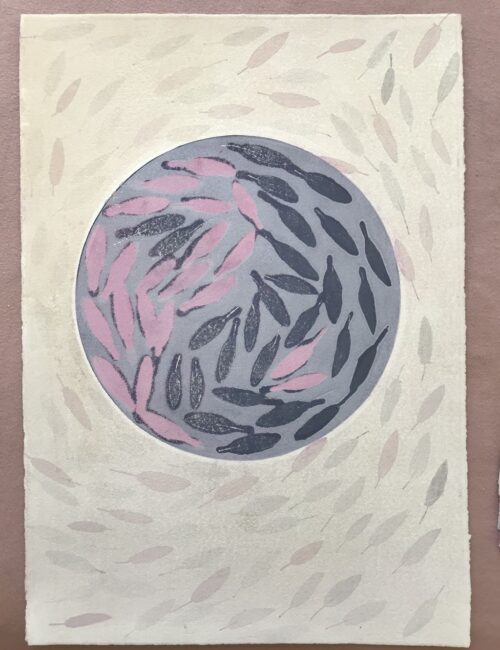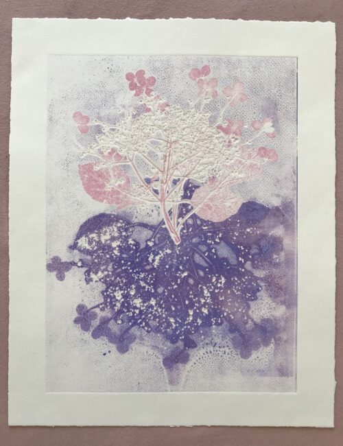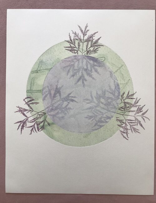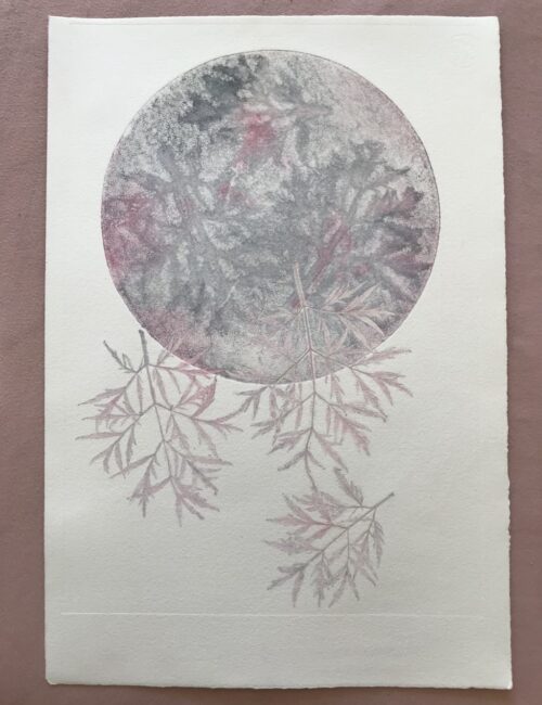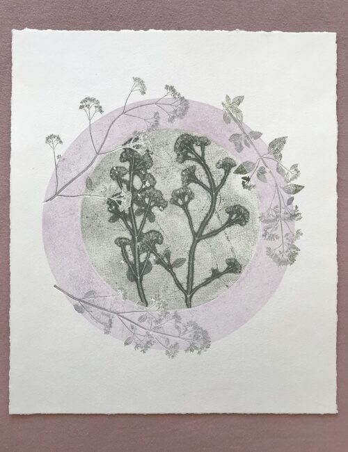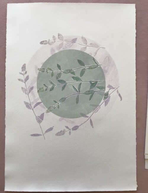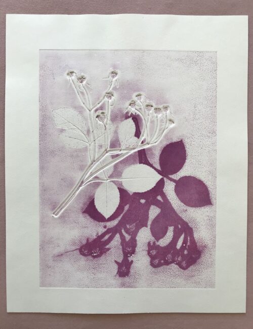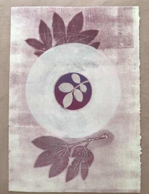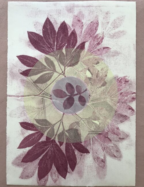 Gemischtes„Gemischtes“ beinhaltet Bilder, die gemalt, gedruckt oder gezeichnet wurden. Pflanzenprägedruck 2025, Serie: "Von innen heraus" Sommergarten 2024